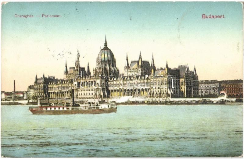Budapest V. Országház, Parlament, gőzhajó (EK) https://www.darabanth.com/de/375-Fernauktion/375.0/Ansichtskarten/Ungarn~1500005/Budapest-V-Orszaghaz-Parlament-gozhajo-EK~II2103523