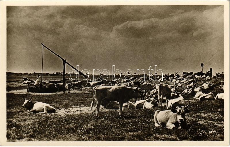 Hortobágy, magyar ökrök delelőn, gémeskút, folklór https://www.darabanth.com/de/375-Fernauktion/375.0/Ansichtskarten/Ungarn~1500005/Hortobagy-magyar-okrok-delelon-gemeskut-folklor~II2199465