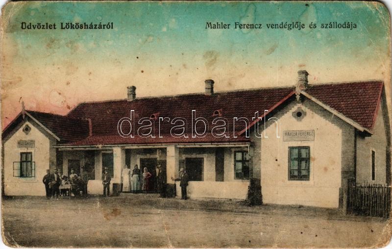 Lőkösháza, Mahler Ferenc vendéglője és szállodája, étterem (EM) https://www.darabanth.com/de/375-Fernauktion/375.0/Ansichtskarten/Ungarn~1500005/Lokoshaza-Mahler-Ferenc-vendegloje-es-szallodaja-etterem-EM~II2193295