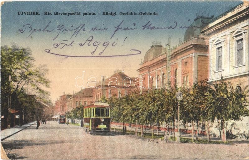 1918 Újvidék, Novi Sad; Kir. törvényszéki palota, villamos / court, tr... https://www.darabanth.com/de/375-Fernauktion/375.0/Ansichtskarten/Vojvodina~1500010/1918-Ujvidek-Novi-Sad-Kir-torvenyszeki-palota-villamos-court-tram-kopott-sarok-worn-c~II2103687