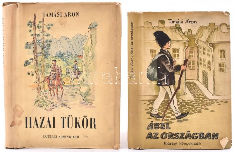 2 db Tamási Áron könyv: Ábel az országban; Hazai tükör. Bp., Ifjúsági Könyvkiadó. Félvászon-, illetve kiadói egészvászon-kötésekben, eredeti papírborítóban.