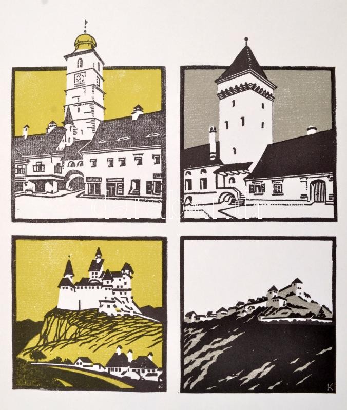 Székely András: Kós Károly. Bp., 1979, Corvina,(Offset-ny.), 12 p+12 t.. Kós Károly grafikai munkásságának bemutatása, színes illusztrált kiadvány. Magyar, angol, német és francia nyelven. Kiadói illusztrált, papír mappában, hiánytalanul, jó állapotban.