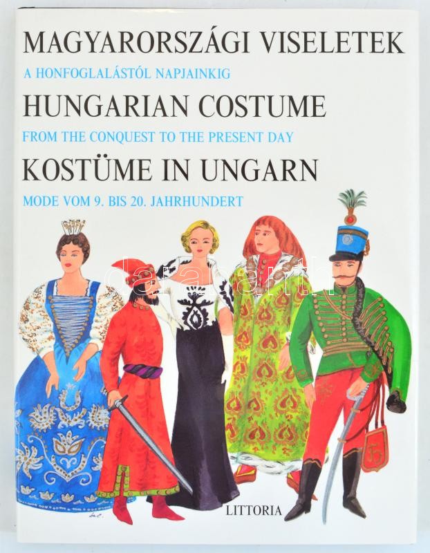 Ék Erzsébet: Magyarországi viseletek a honfoglalástól napjainkig. hn.,1994,Littoria. Magyar, angol és német nyelven. Kiadói egészvászon-kötés, kiadói papír védőborítóban ,szép állapotú.