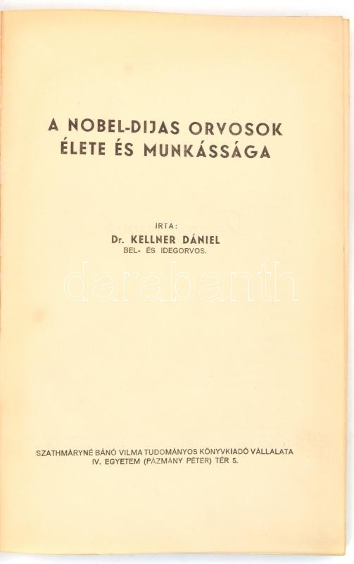 Dr. Kellner Dániel: A Nobel-díjas orvosok élete és munkássága. Bp., é.... https://www.darabanth.com/de/375-Fernauktion/375.0/Bucher/Bucher-Naturwissenschaft-Medizin~1000009/Dr-Kellner-Daniel-A-Nobel-dijas-orvosok-elete-es-munkassaga-Bp-en-Szathmaryne-BanC3~II2183602