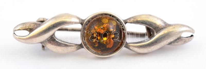 Beschreibung: Ezüst(Ag) bross, borostyán kővel, jelzett, 3,3x0,8 cm, bruttó: 3,17 g