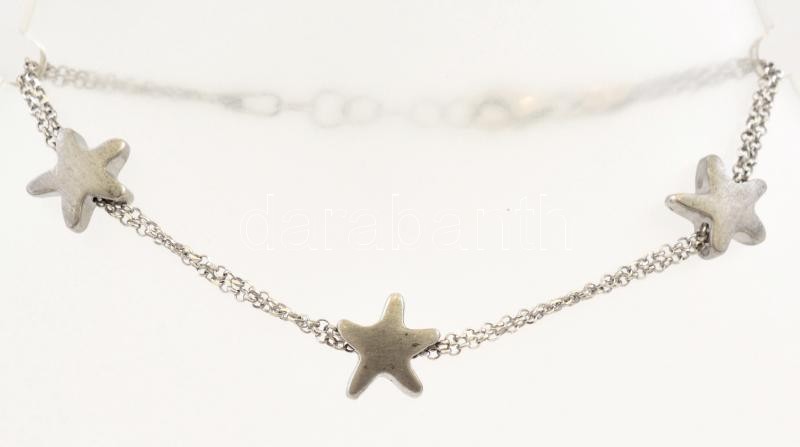 Beschreibung: Ezüst(Ag) dupla láncos, fehér kövekkel kirakott tengeri csillagos karkötő, jelzett, h: 18 cm, bruttó: 5,15 g