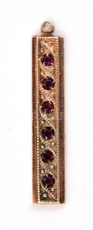 Beschreibung: Ezüst(Ag) fehér köves fülbevalópár, jelzett, h: 1,5 cm, bruttó: 1,21 g + bizsu medál lila kövekkel, 3x0,5 cm
