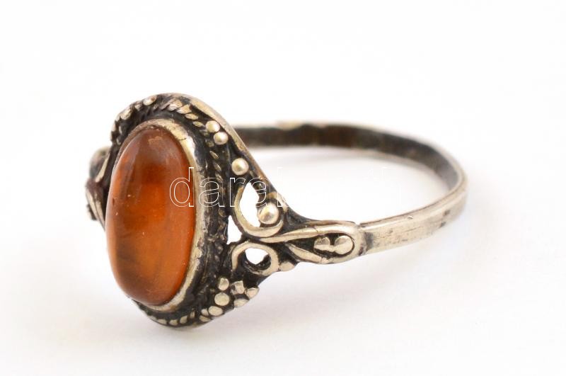 Beschreibung: Ezüst(Ag) gyűrű borostyán kővel, jelzett, méret: 55 bruttó: 1,96 g