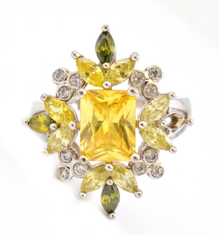 Beschreibung: Ezüst(Ag) gyűrű, színes kövekkel berakva, jelzett, méret: 55 bruttó: 5,3 g