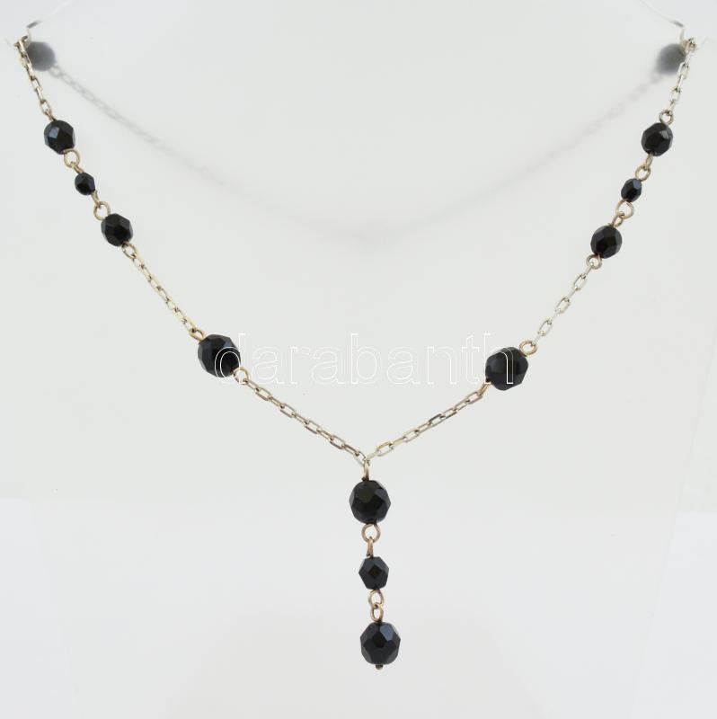 Beschreibung: Ezüst(Ag) nyaklánc, fekete gyöngyökkel, jelzett, h: 36 cm, bruttó: 7,9 g