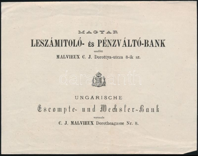 1870 "Magyar Leszámitoló- és Pénzváltó-bank" számlája https://www.darabanth.com/de/375-Fernauktion/375.0/Kunst-Dokumente-andere-Sammelgebiete/Dokument~500018/1870-Magyar-Leszamitolo-es-Penzvalto-bank-szamlaja~II2197632