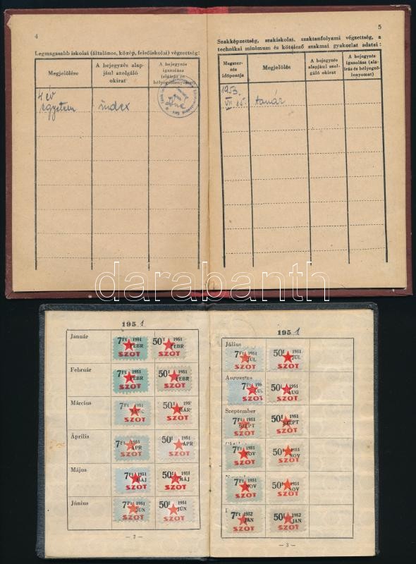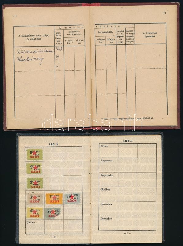 cca 1951-53 Munkakönyv ÁVH mint munkahely bejegyzéssel + szakszervezet... https://www.darabanth.com/de/375-Fernauktion/375.0/Kunst-Dokumente-andere-Sammelgebiete/Dokument~500018/cca-1951-53-Munkakonyv-AVH-mint-munkahely-bejegyzessel-plus-szakszervezeti-konyv~II2194179