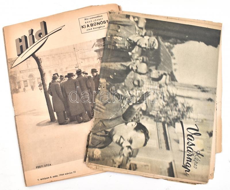 1944 október 24., Képes Vasárnap, Szálasi Ferenccel a címlapon, sok II. világháborús fotóval, sérült, szakadt + Híd, 1944. március 15, több írással az 1848-as forradalamról, sok korabeli reklámmal