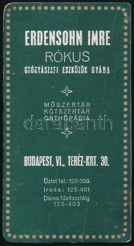 cca 1936 Erdensohn Imre Rókus Gyógyászati Eszközök Gyára reklámkartonj... https://www.darabanth.com/de/375-Fernauktion/375.0/Kunst-Dokumente-andere-Sammelgebiete/Werbungen~500022/cca-1936-Erdensohn-Imre-Rokus-Gyogyaszati-Eszkozok-Gyara-reklamkartonja-kulon-telefonszam~II2202606