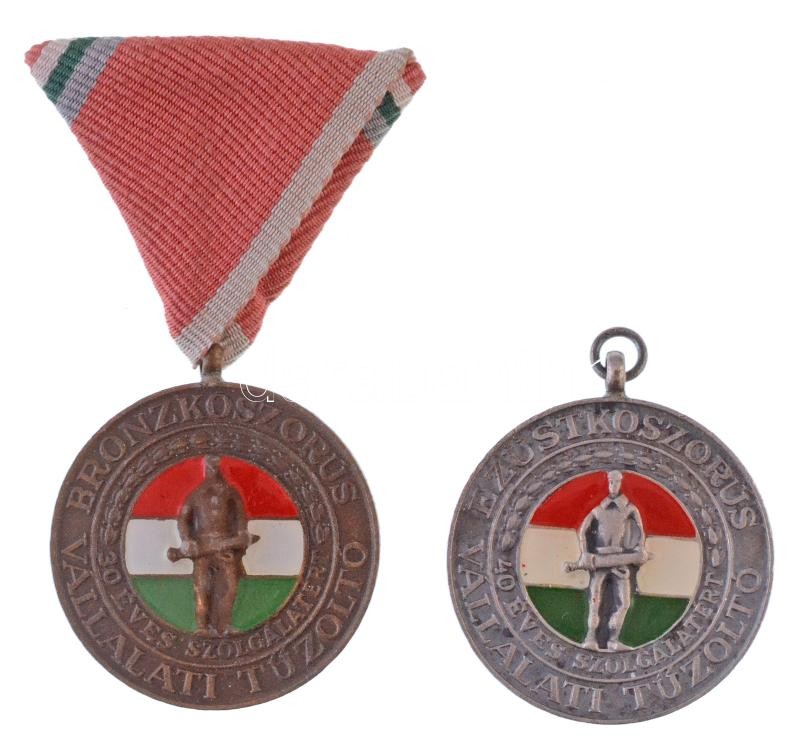 Beschreibung: 1974. "Bronzkoszorús Vállalati Tűzoltó - 30 éves szolgálatért" műgyantás Br kitüntetés mellszalagon + "Ezüstkoszorús Vállalati Tűzoltó - 40 éves szolgálatért" ezüstpatinázott műgyantás Br kitüntetés mellszalagon T:1-