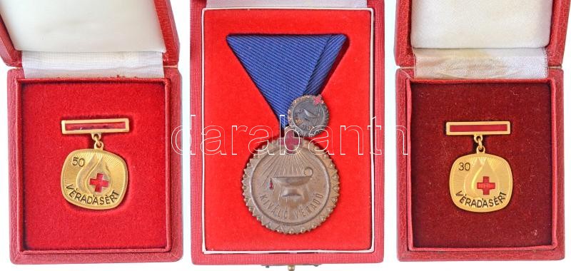 Beschreibung: ~1970-1980. "Kiváló Véradó" zománcozott Br kitüntetés mellszalagon + "30 véradásért" fém jelvény + "50 véradásért" fém jelvény. Mindhárom eredeti tokban és miniatűrrel T:1-2