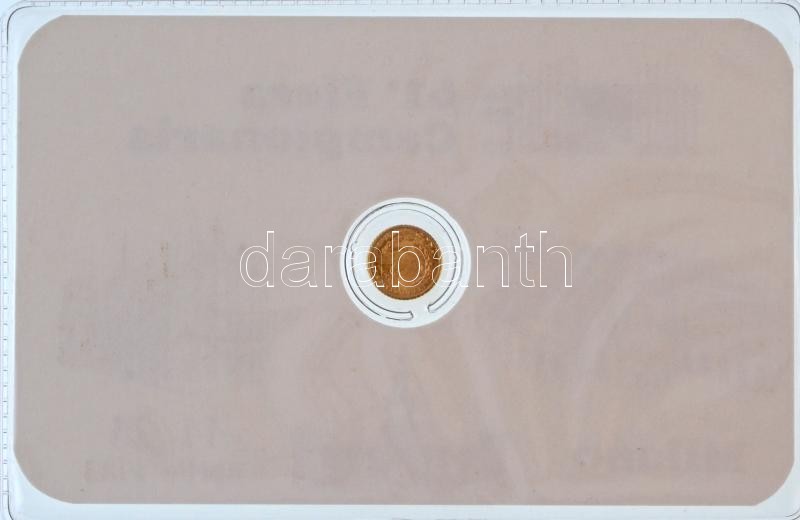 DN "61. Milánói Vásár - USA 1921. 1$" jelzetlen modern mini Au pénz, lezárt, eredeti műanyag tokban (0.333/10mm) T:BU ND "61th Trade Fair of Milan - USA 1921. 1$" modern mini Au coin without hallmark, in sealed plastic case (0.333/10mm) C:BU