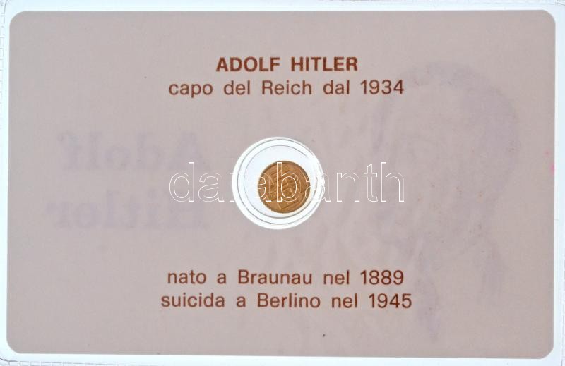 DN "Adolf Hitler" jelzetlen modern mini Au pénz, lezárt, eredeti műanyag tokban (0.333/10mm) T:BU ND "Adolf Hitler" modern mini Au coin without hallmark, in sealed plastic case (0.333/10mm) C:BU