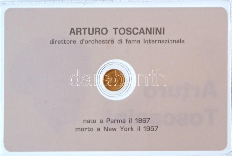 DN "Arturo Toscanini" jelzetlen modern mini Au pénz, lezárt, eredeti műanyag tokban (0.333/10mm) T:BU ND "Arturo Toscanini" modern mini Au coin without hallmark, in sealed plastic case (0.333/10mm) C:BU