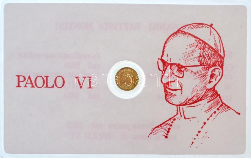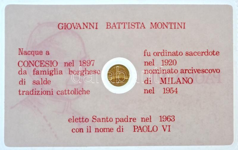 DN "VI. Pál" jelzetlen modern mini Au pénz, lezárt, eredeti műanyag tokban (0.333/10mm) T:BU ND "Paul VI" modern mini Au coin without hallmark, in sealed plastic case (0.333/10mm) C:BU