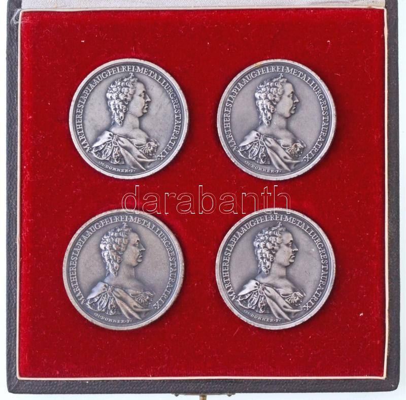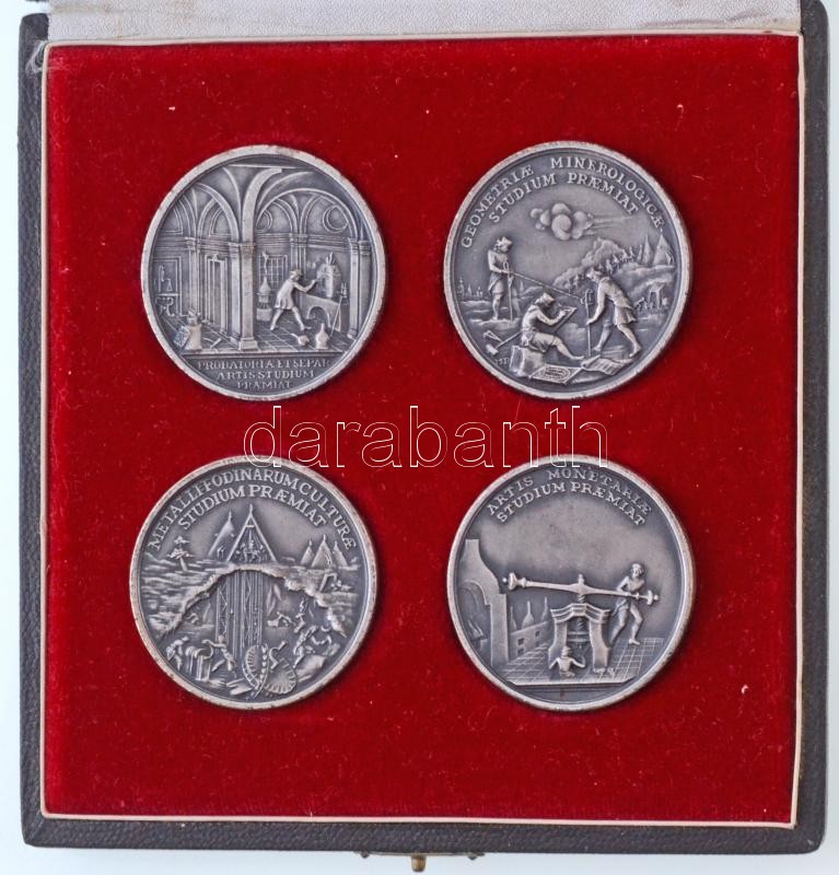 Beschreibung: ~1960-1970 "Selmecbányai Bányászati Akadémia tanulmányi éremsorozat" Matthäus Donner emlékérméinek utánveretei, ezüstözött Br jutalomérem sorozat (4 db-os) díszdobozban (46mm) T:1-