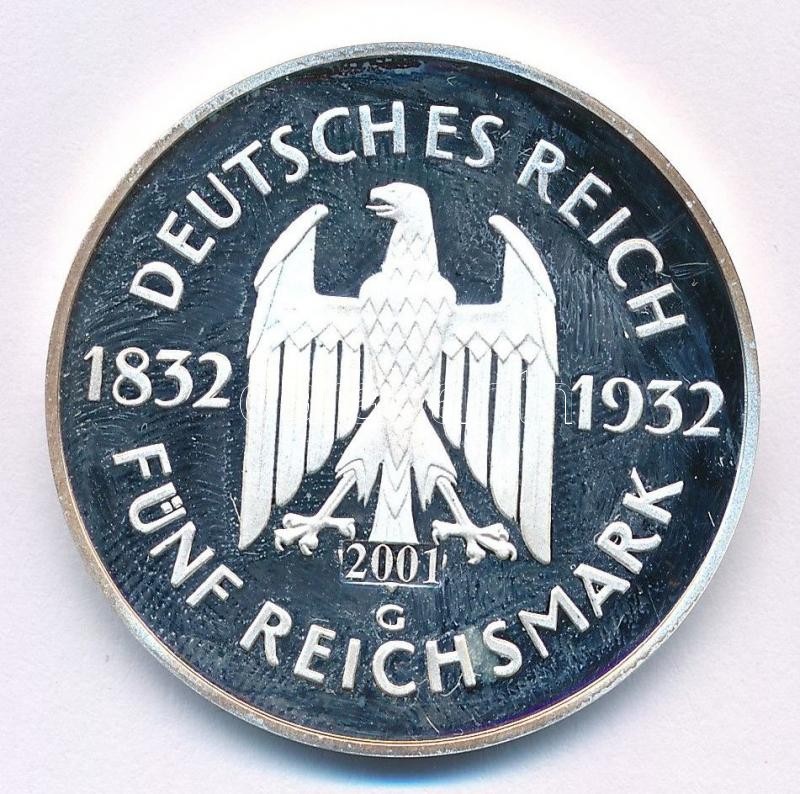 Germany 2001G. 1932. 5 Mark mirror-like metal replica "Centenary - Death of Goethe - 1832-1932" C:Unc