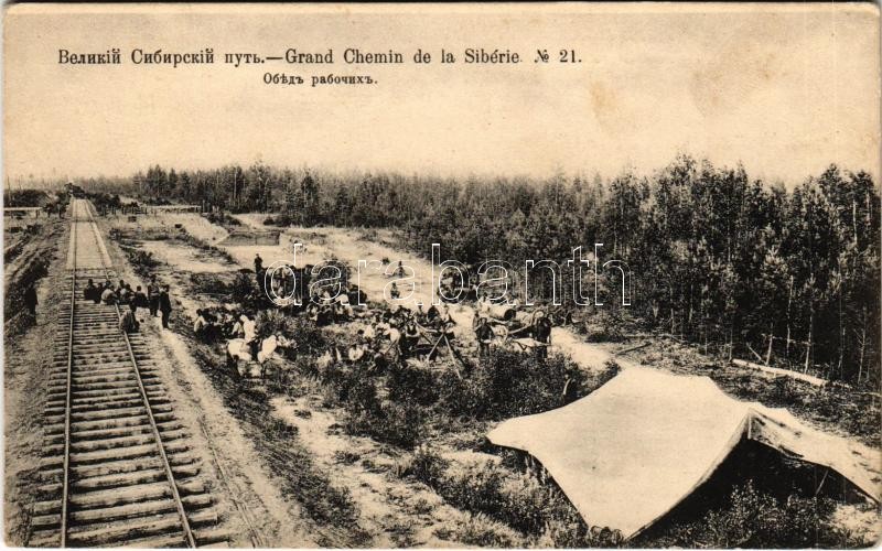 Siberia, Sibirj; Grand Chemin de la Siberie / resting railway builders... https://www.darabanth.com/de/376-Fernauktion/376.0/Ansichtskarten/RuC39Fland~1500066/Siberia-Sibirj-Grand-Chemin-de-la-Siberie-resting-railway-builders-and-workers-of-the-Trans-Sibe~II1944861