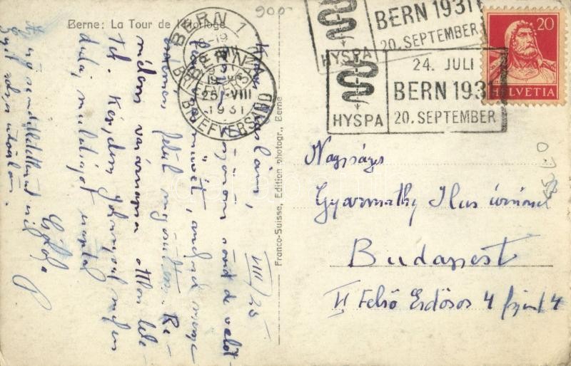 1931 Bern, Berne; Zeitglockenturm / clock tower, belfry, street, autom... https://www.darabanth.com/de/376-Fernauktion/376.0/Ansichtskarten/Schweiz~1500074/1931-Bern-Berne-Zeitglockenturm-clock-tower-belfry-street-automobiles-plus-Hyspa-Bern-1931-So~II2052715