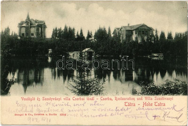 1902 Tátra, Tatry; Csorba-tó, Szentiványi villa / Strbské Pleso / hote... https://www.darabanth.com/de/376-Fernauktion/376.0/Ansichtskarten/Slowakei~1500006/1902-Tatra-Tatry-Csorba-to-Szentivanyi-villa-Strbske-Pleso-hotel-lake-EK~II1973602