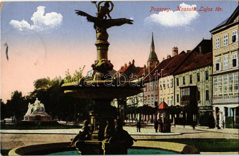 Pozsony, Pressburg, Bratislava; Kossuth Lajos tér, szökőkút, Központi ... https://www.darabanth.com/de/376-Fernauktion/376.0/Ansichtskarten/Slowakei~1500006/Pozsony-Pressburg-Bratislava-Kossuth-Lajos-ter-szokokut-Kozponti-sorcsarnok-square-fou~II2007708