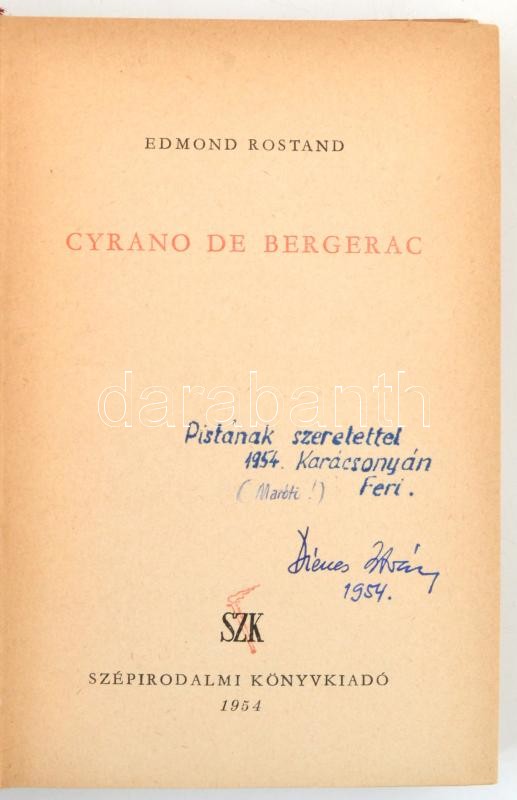 Edmond Rostand: Cyrano de Bergerac. Ford.: Ábrányi Emil. Fülöp Zoltán illusztrációival. Bp., 1954, Szépirodalmi Könyvkiadó. Kiadói félvászon-kötés.