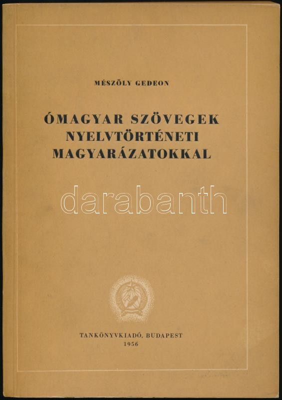 Mészöly Gedeon: Ómagyar szövegek nyelvtörténeti magyarázatokkal. Bp., ... https://www.darabanth.com/de/376-Fernauktion/376.0/Bucher/Bucher-Sozialwissenschaften~1000010/Meszoly-Gedeon-Omagyar-szovegek-nyelvtorteneti-magyarazatokkal-Bp-1956-Tankonyvkiado~II2162475