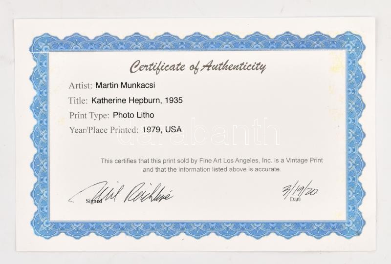 Beschreibung: Munkácsi Márton (Martin Munkacsi) (1896-1963): Katherine Hepburn. 1935. 1979-es foto-litográfia. Certifikáttal. / Certified photo-lithography 21x29 cm
