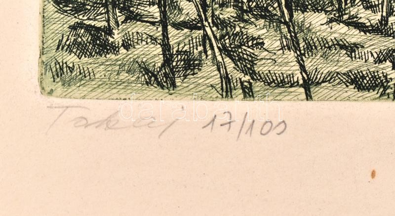Beschreibung: Csisztu Mihály (1933-2008) Tokaj. Rézkarc, papír. Jelzett. 20x34 cm