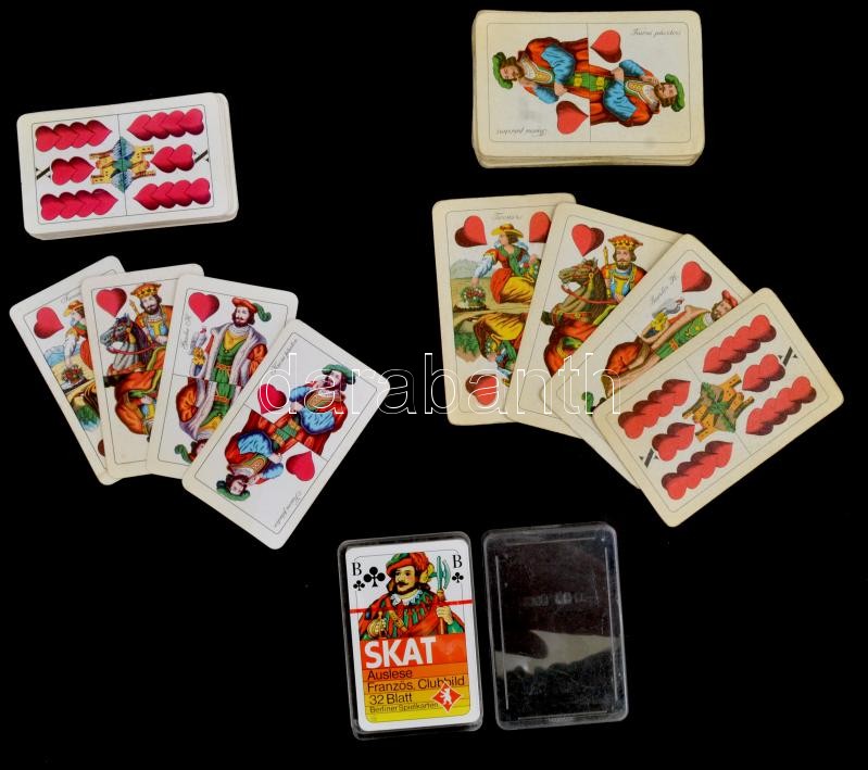 Beschreibung: 1 pakli francia és 2 pakli magyar kártya vegyes állapotban
