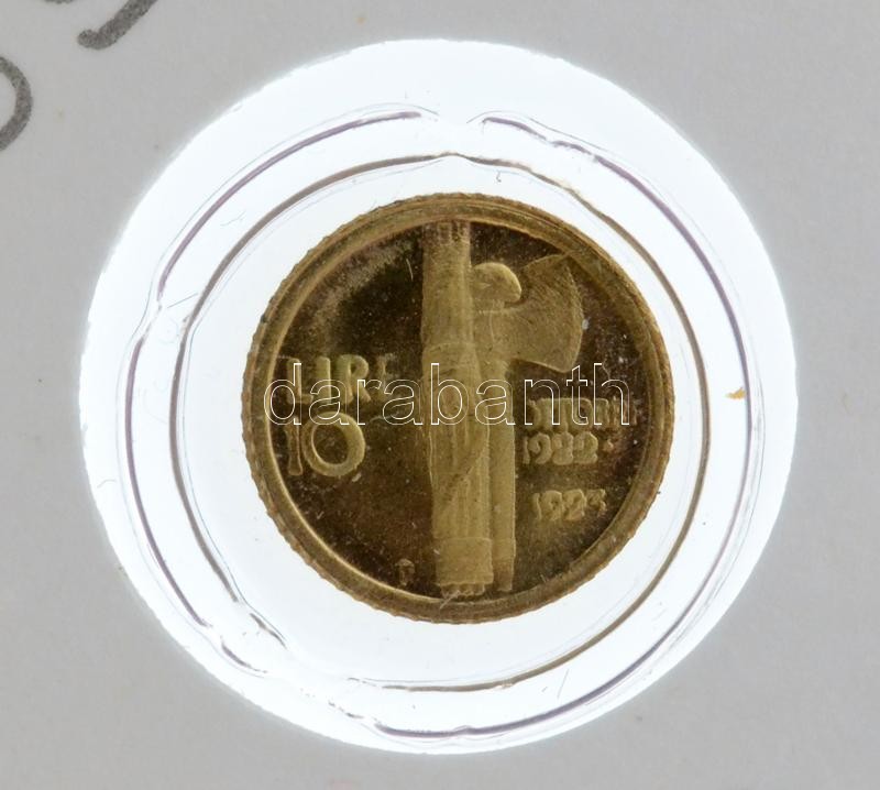 DN "Benito Mussolini" jelzetlen modern mini Au pénz, lezárt, eredeti műanyag tokban (0.333/10mm) T:BU ND "Benito Mussolini" modern mini Au coin without hallmark, in sealed plastic case (0.333/10mm) C:BU