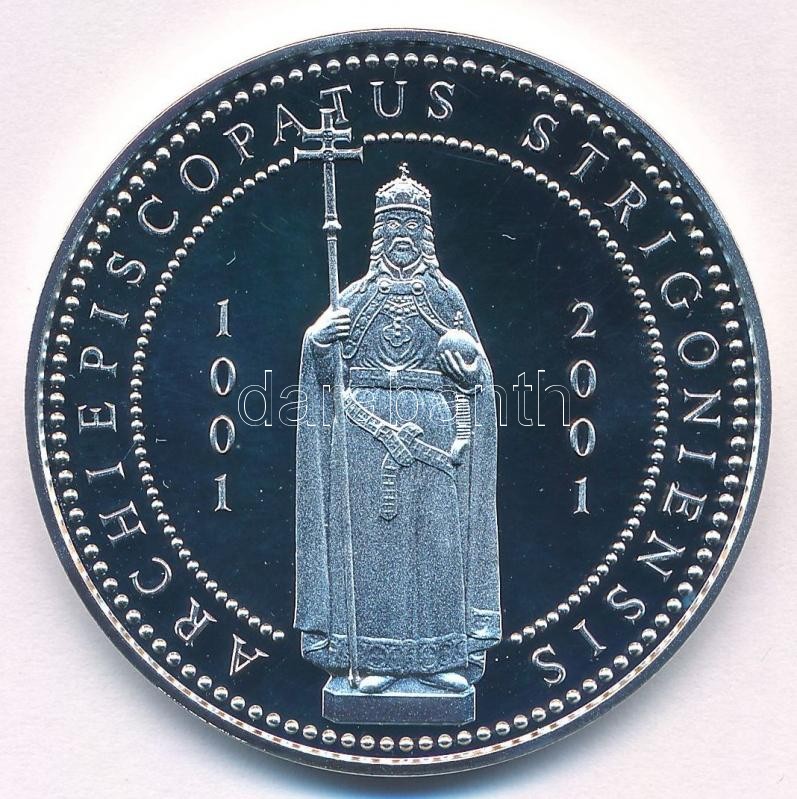 2001. "Esztergomi érsekség 1001-2001" ezüstözött CuZn emlékérem az érsekség alapításának 1000. évfordulójára, dísztokban, tanúsítvánnyal (42,5mm) T:PP