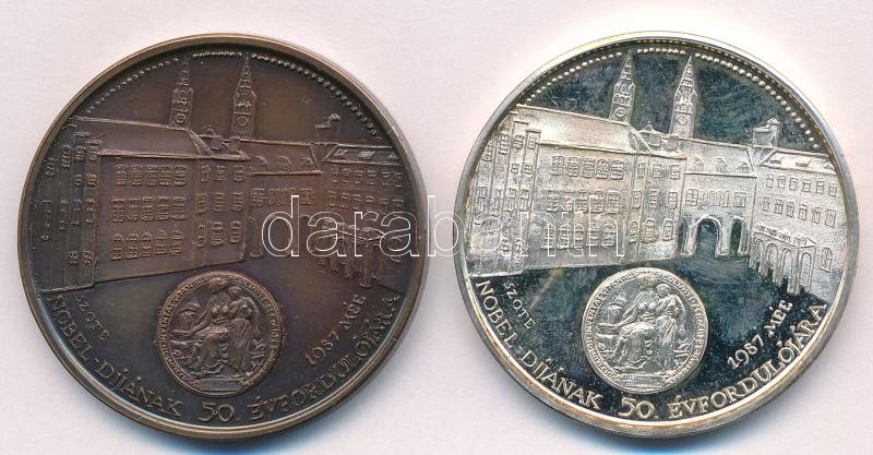 Lapis András (1942- ) 1989. "Szent-Györgyi Albert Orvostudományi Egyetem / Magyar Szemorvos Társaság Vándorgyűlése - Szeged 1989" Br és Ag emlékérem pár, peremen "SZG" jelzéssel (35,54/0.835/42,5mm) T:1 (eredetileg PP) patina