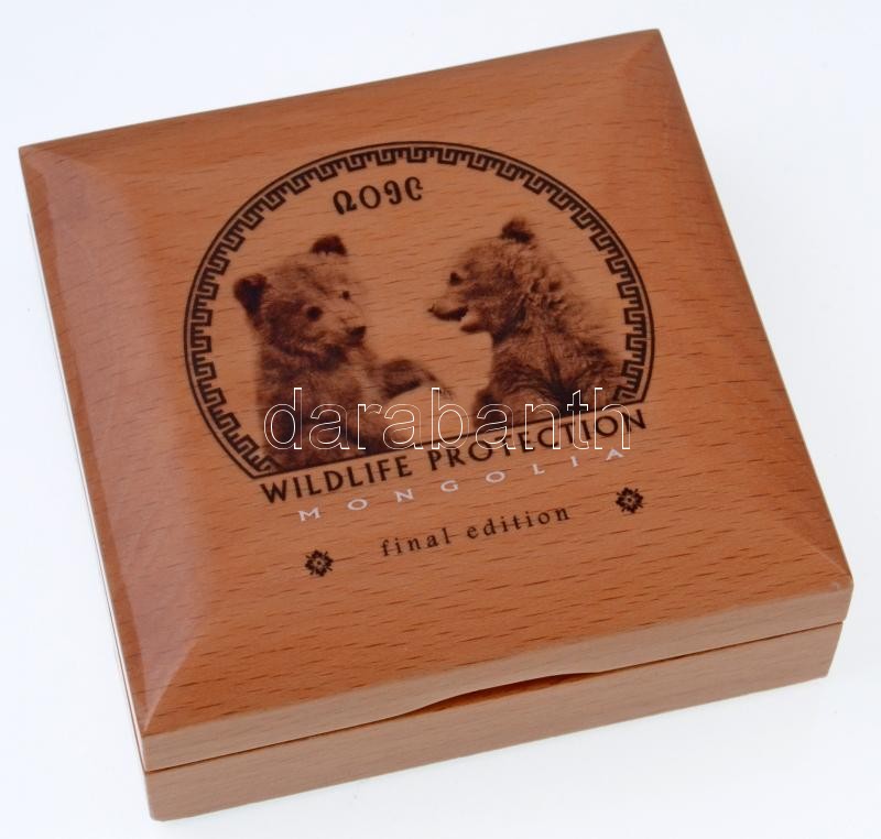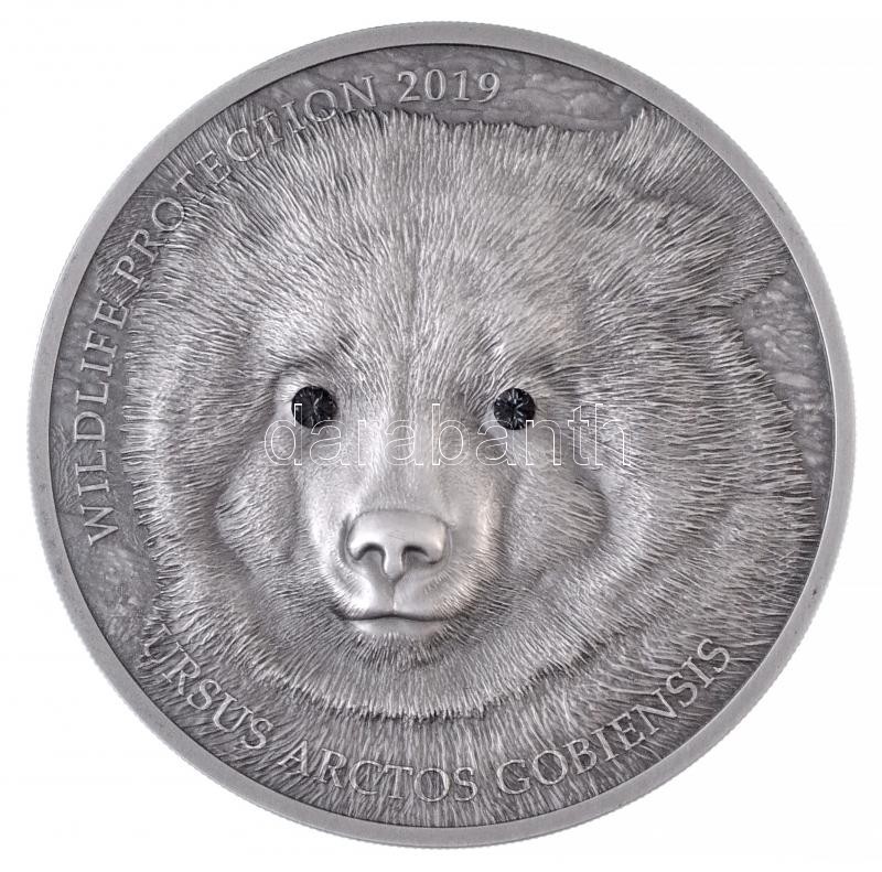 Mongólia 2019. 500T Ag "Mongóliai Gobi Medve" Swarowski kristályokkal, dísztokban, tanúsítvánnyal (31,40g/0.999) T:1 Mongolia 2019. 500 Togrog Ag "Mongolian Gobi Bear" with Swarowski elements, in original case and with certificate (31,40g/0.999) C:UNC