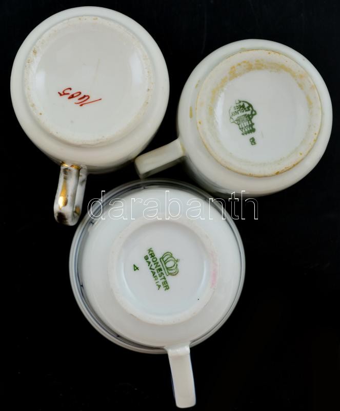 Beschreibung: Össz. 3 db kisméretű csésze, egyik Zsolnay, matricás, jelzett, másik Kronester Bavaria, aljjal, kopott, mindegyik m: 6 cm
