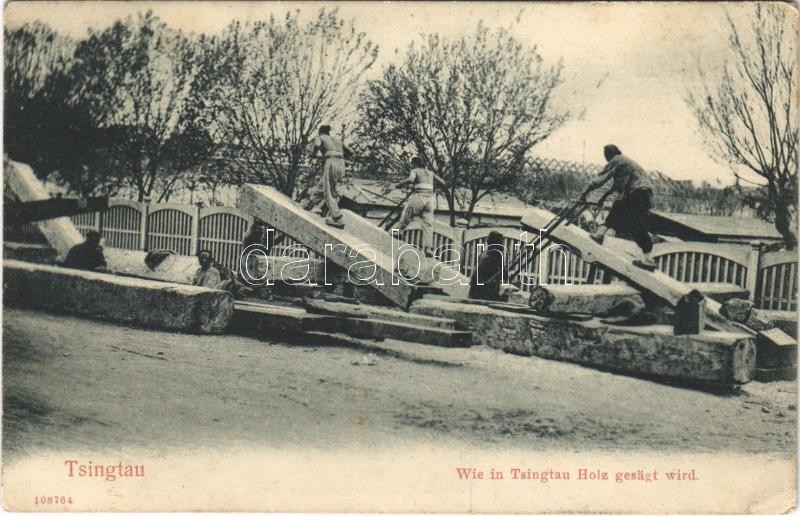 Qingdao, Tsingtau, Kiautschou Bay concession; Wie in Tsingtau Holz ges... https://www.darabanth.com/de/377-Fernauktion/377.0/Ansichtskarten/China~2000038/Qingdao-Tsingtau-Kiautschou-Bay-concession-Wie-in-Tsingtau-Holz-gesagt-wird-wood-sawing-Chine~II2222802