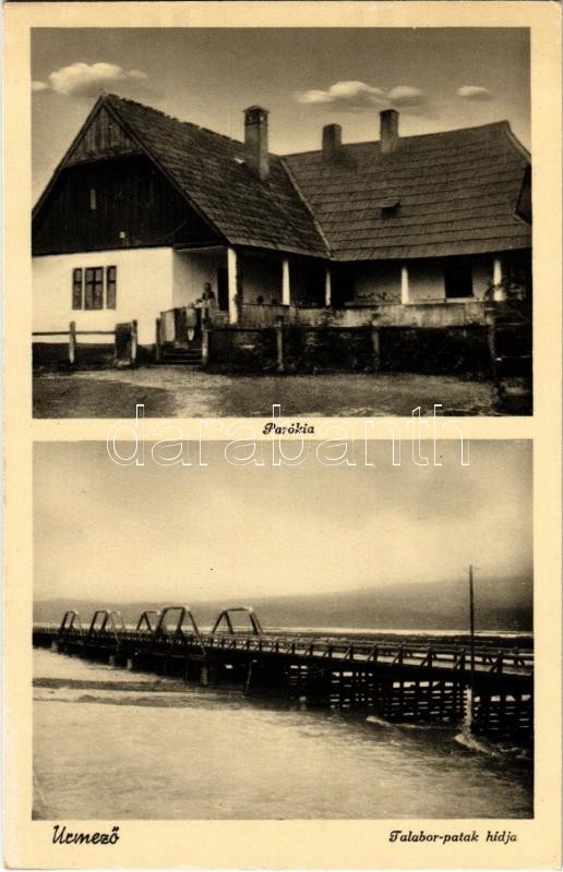 Beschreibung: Úrmező, Vermeziv, Polien Riskeve, Ruske Pole; Parókia, Talabor folyó hídja. Kiadja a Kárpátaljai Hangya Szövetkezet / parsonage, River Tereblia bridge
