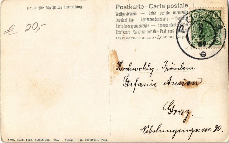 Beschreibung: 1907 SMS Babenberg az Osztrák-Magyar Haditengerészet Habsburg-osztályú pre-dreadnought csatahajója (Linienschiff) / Austro-Hungarian Navy, K.u.K. Kriegsmarine, SMS Babenberg pre-dreadnought battleship