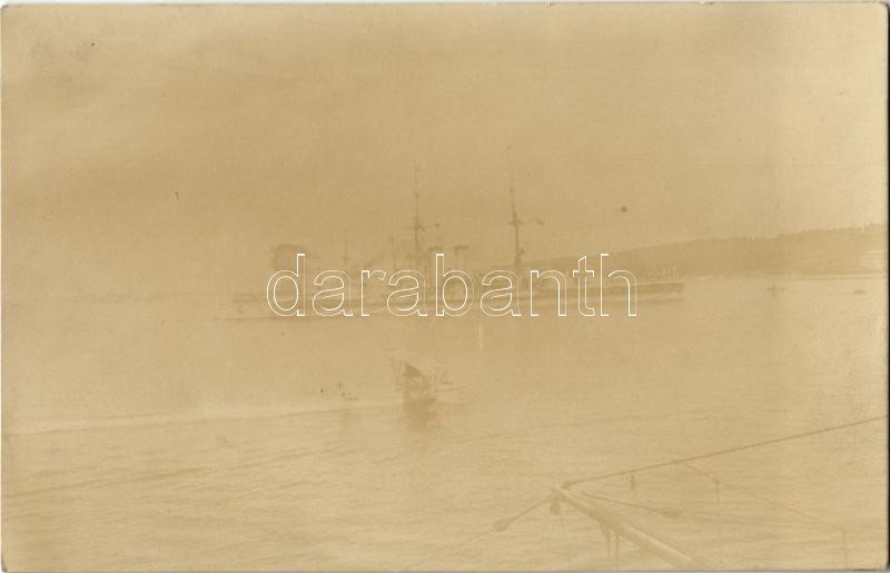 Osztrák-Magyar Haditengerészet vízi repülőgépe (hidroplán) és csatahajója a tengeren / K.u.K. Kriegsmarine Seeflugzeug / WWI Austro-Hungarian Navy seaplane, naval aircraft and battleship at sea. photo (fl)