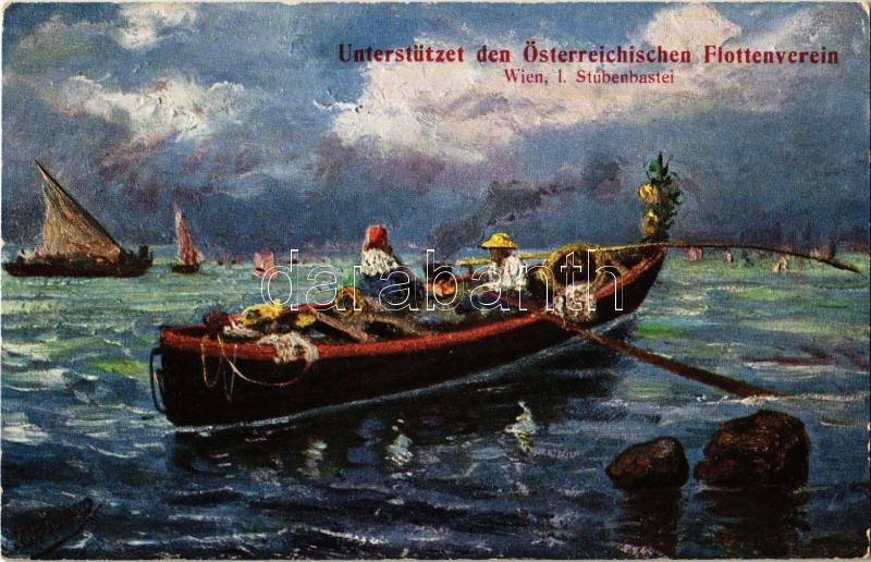Beschreibung: Unterstützet den Österreichischen Flottenverein, Wien I. Stubenbastei. H.K. & Co. M. Serie 466. Marke Palette / Austro-Hungarian Navy art postcard