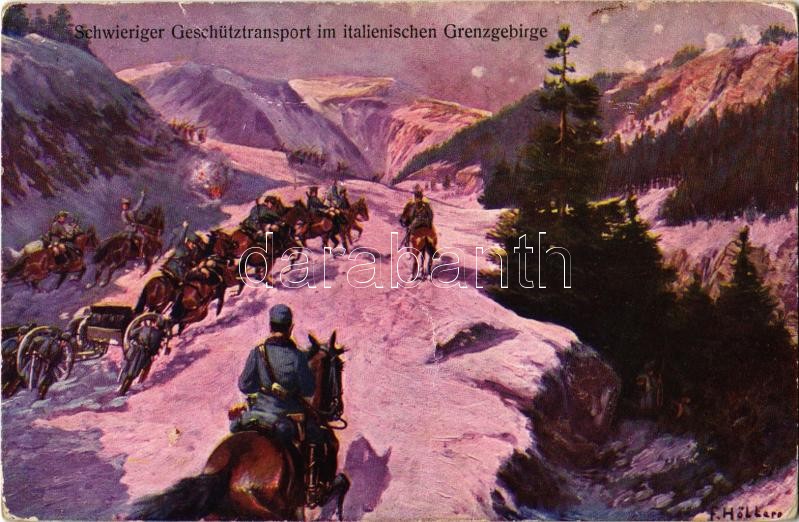 Fáradtságos ágyúszállítás az olasz határ hegyekben / Schwieriger Geschütztransport im italienischen Grenzgebirge / WWI Austro-Hungarian K.u.K. military, transport of cannons in the Italian border mountains s: F. Höllerer (EK)