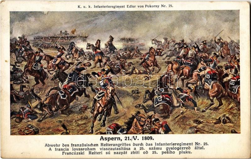 K.u.K. Infanterieregiment Edler von Pokorny Nr. 25. Aspern 21. V. 1809. Abwehr des französischen Reiterangriffes durch das Infanterieregiment Nr. 25. / A francia lovasroham visszautasítása a 25. számú gyalogezred által / Austro-Hungarian K.u.K. military, repel of a French cavalry attack by the 25th Infantry Regiment (fl)