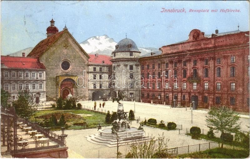Innsbruck, Rennplatz mit Hofkirche / square, church (EK) https://www.darabanth.com/de/377-Fernauktion/377.0/Ansichtskarten/Osterreich~2000020/Innsbruck-Rennplatz-mit-Hofkirche-square-church-EK~II2161115