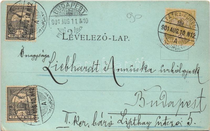 1901 Tátra, Vysoké Tátry; út Tátralomnic felé, vasúti pálya, hajtány / Bahnstrecke nach Tátra-Lomnicz / railroad, railway line to Tatranská Lomnica, handcar (EK)