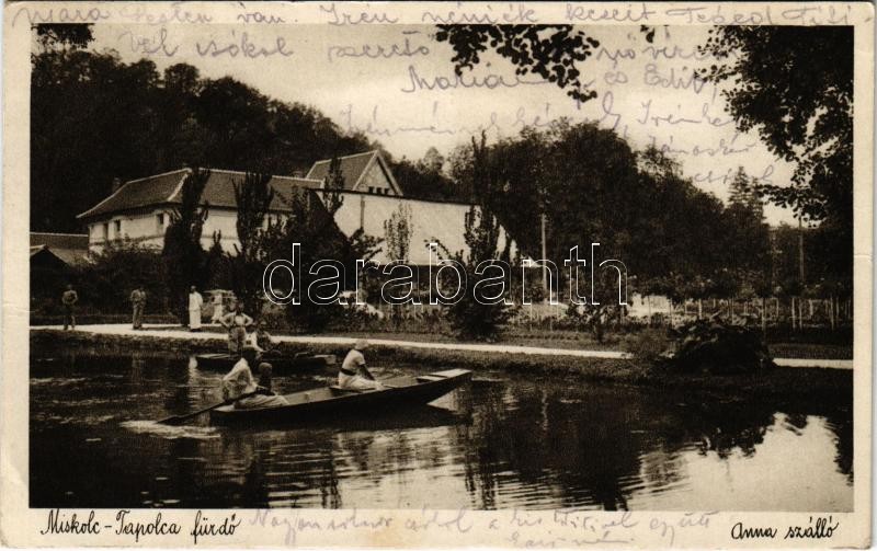 Miskolc, Tapolca fürdő, Anna szálló, csónakázók. Márton felvétele (EK) https://www.darabanth.com/de/377-Fernauktion/377.0/Ansichtskarten/Ungarn~2000006/Miskolc-Tapolca-furdo-Anna-szallo-csonakazok-Marton-felvetele-EK~II2182283